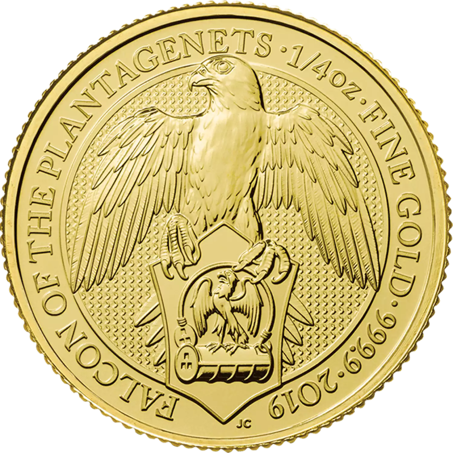 The 2019 1/4oz Britain Queen's Beast: The Falcon of the Plantagenets is the sixth release in this 10 coin "Queen's Beasts" series. The Britain Queen's Beasts celebrate the British Monarch and the centuries of fascinating heraldry. This strikingly beautiful gold coin contains 1/4 oz of .9999 fine gold. This one ounce gold bullion coin is the sixth addition to The Queen’s Beasts bullion range. Inspired by ancient symbols of power and identity, the range brings to life the ten imposing statues that lined the entrance to Westminster Abbey in 1953 at the coronation of Her Majesty The Queen.
