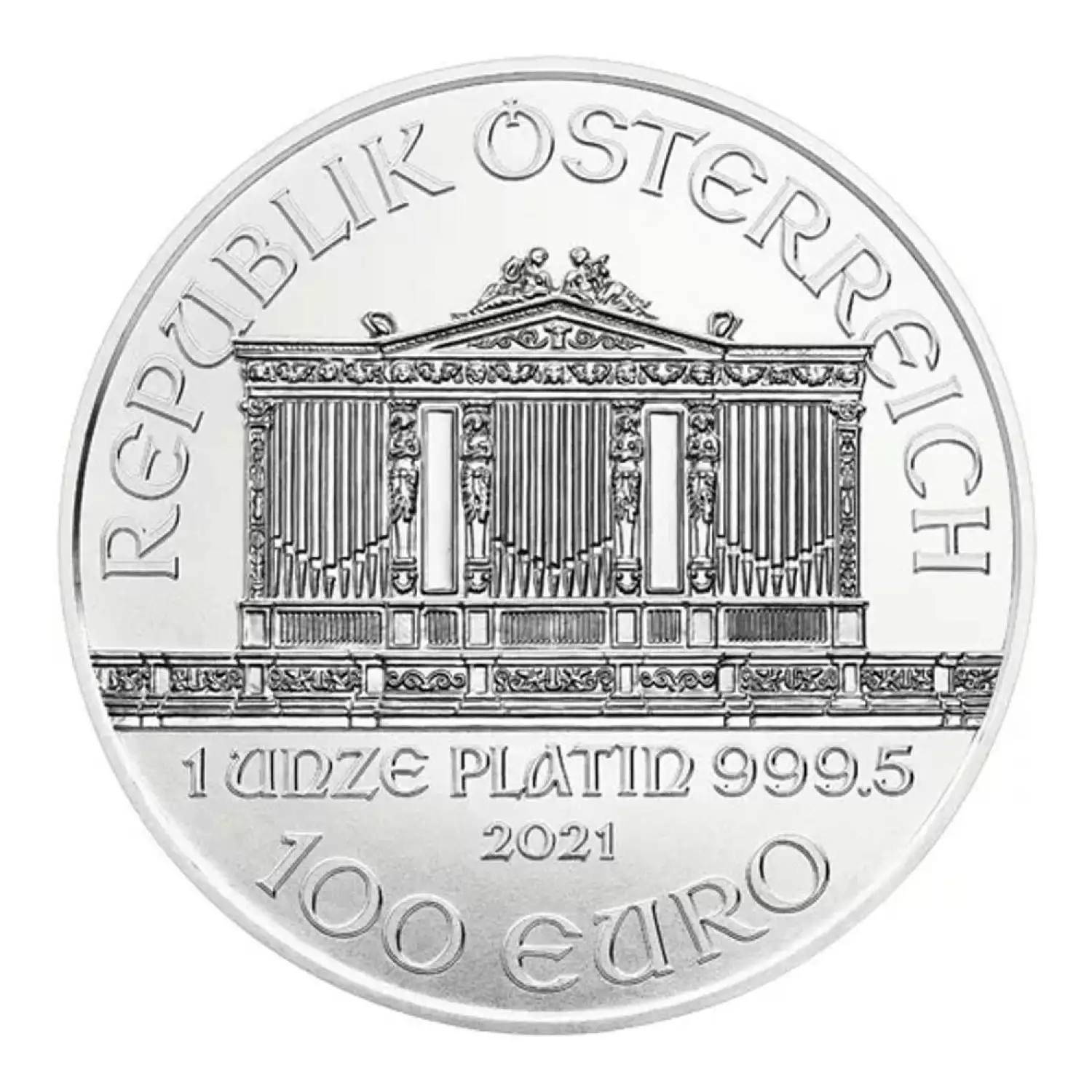 Guaranteed by the Australian Mint, the 2021 1oz Austrian Platinum Philharmonic is composed of 1 troy ounce of .9995 fine platinum. The obverse of the coin depicts the Great pipe organ in the Gold Hall of the Wiener Musikverein.